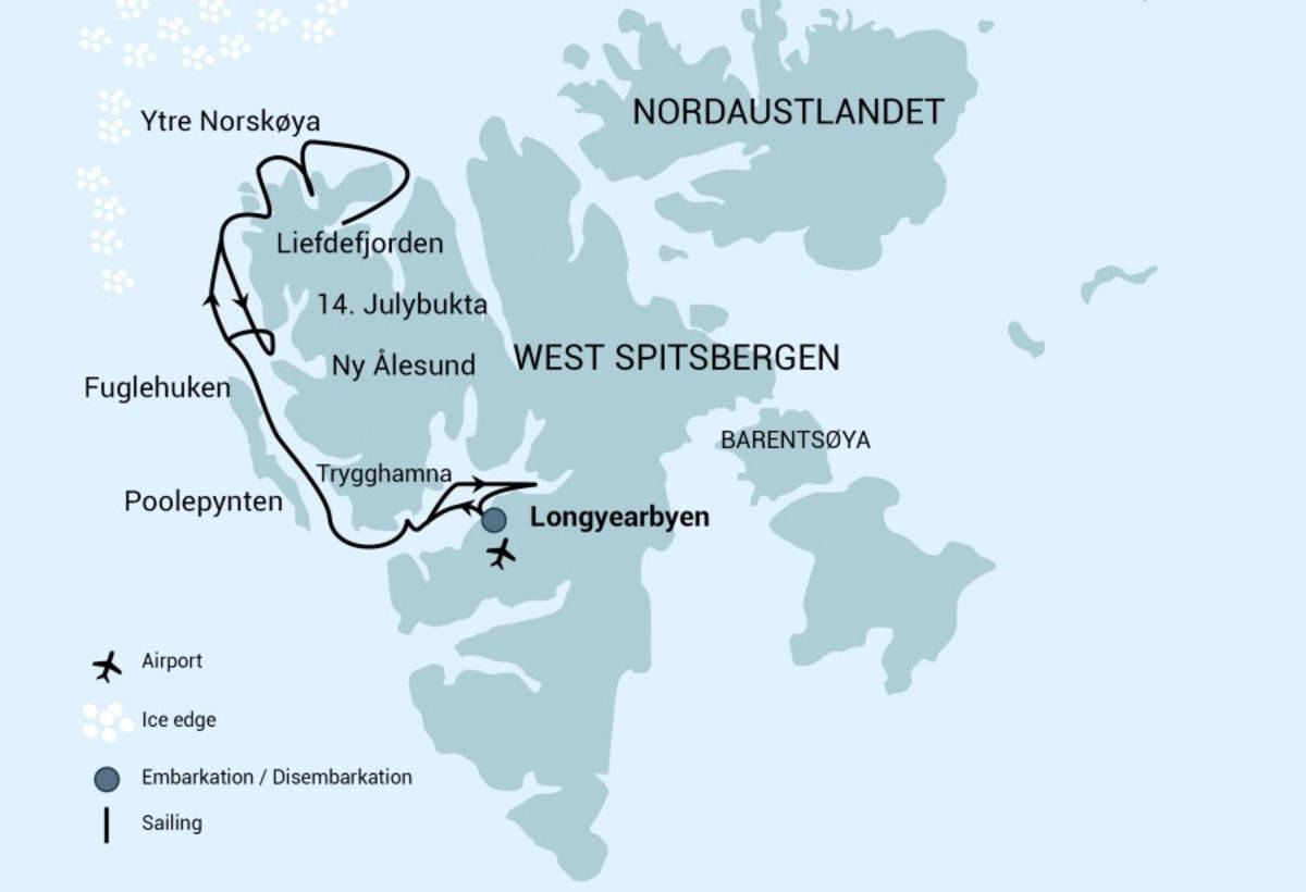 All itineraries are for guidance only. Programs may vary depending on local ice, weather, and wildlife conditions. Landings are subject to site availabilities, permissions, and environmental concerns per AECO regulations. Official sailing plans and landing slots are scheduled with AECO prior to the start of the season, but the expedition leader determines the final plan. Flexibility is paramount for expedition cruises, and willingness to compromise on comfort is a basic requirement on board a historic sailing vessel. Important information about the use of sails: The vessel is equipped with sails to be used in good conditions (based on open sea, water depth, wind, and time allowance), but the use of sails is not guaranteed. The captain decides whether to use the sails or the engine. If sails are used, the crew will operate them. Guests must follow the safety instructions of the team. The average cruising speed for s/v Rembrandt van Rijn is 6.5 knots.